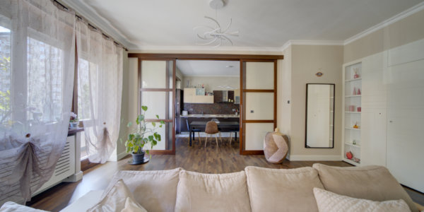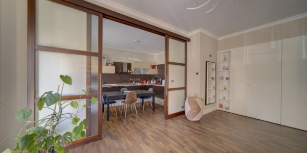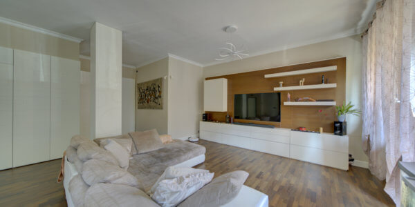 In elegante stabile degli anni ’70 dotato di un efficiente servizio di portineria, non distante dalla fermata della metropolitana Monte Grappa, l’immobiliare Home & Living propone in vendita, come sempre in esclusiva, ampio appartamento di generosa metratura situato al primo piano e caratterizzato da doppia esposizione e spazi vivibili. L’immobile, impreziosito da una ristrutturazione moderna, si compone come segue: ingresso, grande salone doppio con esposizione sul balcone affacciato sul verde di Corso Monte Cucco, spaziosa cucina abitabile, camera da letto padronale con bagno en-suite, seconda camera da letto molto ampia e secondo bagno finestrato. Le due camere da letto hanno esposizione sul tranquillo e silenzioso interno cortile e il balcone molto ampio e confortevole ospita anche la zona lavanderia. L’appartamento attualmente si dispone come quadrilocale ma è facilmente ricavabile una terza camera da letto qualora sia questa l’esigenza dei futuri proprietari. In tutto l’appartamento, sia nella zona giorno che nella zona notte, sono state ricavate dell’eleganti boiserie che contengono delle comodissime armadiature. Sul pavimento è stato posato un raffinato parquet, gli ambienti sono dotati di aria condizionata, gli infissi esterni sono tutti in doppio vetro e legno di elevato pregio e manifattura.