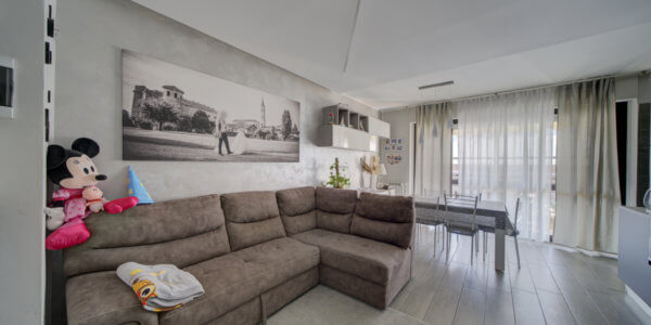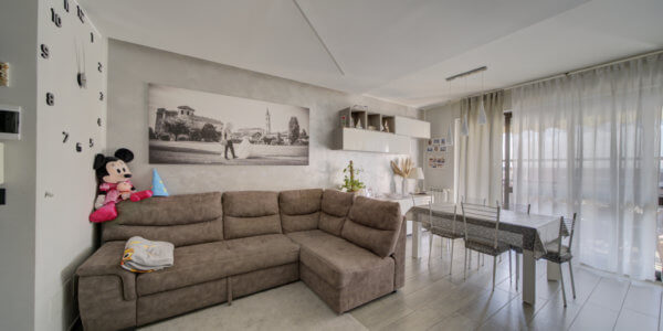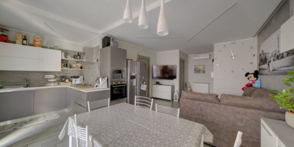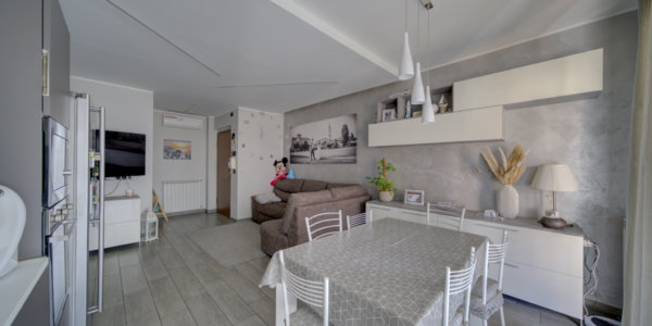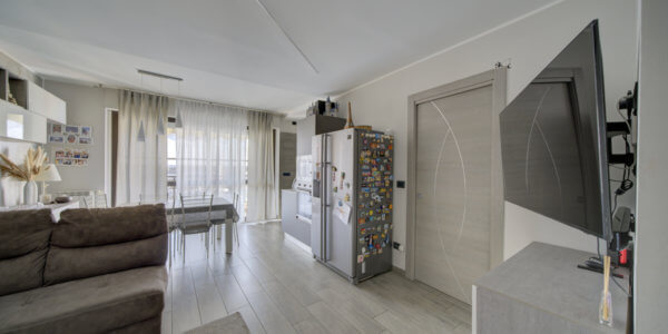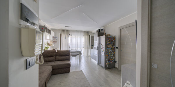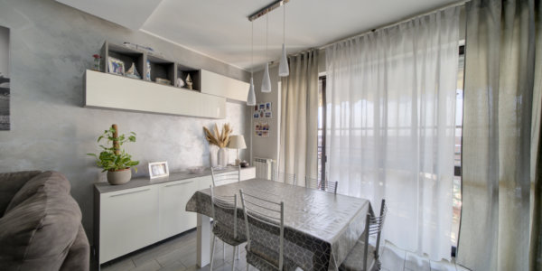 In un elegante complesso residenziale edificato nel 1993, privo di barriere architettoniche e circondato da curati spazi verdi, l’Immobiliare Home & Living propone in vendita un ampio trilocale situato al quinto piano con ascensore. L’appartamento si compone di ingresso su luminoso soggiorno con cucina a vista, lavanderia, due camere da letto e un bagno.